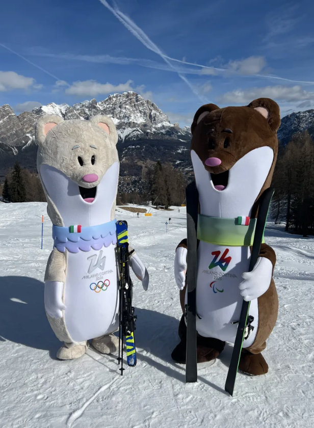 吉祥物是两只拟人化的小动物Tina和Milo,一冷一热,一冰一雪,象征冬奥与冬残奥的双重舞台,也象征着这届冬奥会希望强调的包容与平衡。