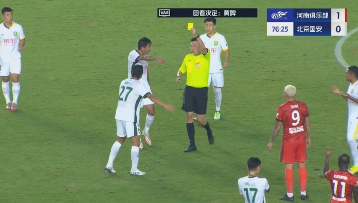 王刚无球状态下击打卡多索面部,主裁判看过VAR后处以黄牌警告